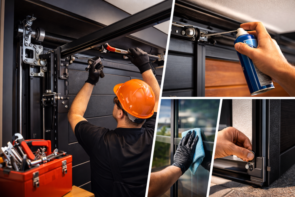 - Lubricate: Use silicone spray on tracks, rollers, and hinges monthly.